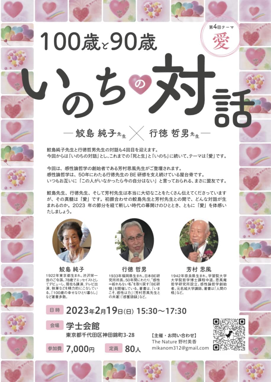 そしてもちろん、90歳の行徳哲男先生と、80歳の芳村思風先生のお話をお届けいたします。