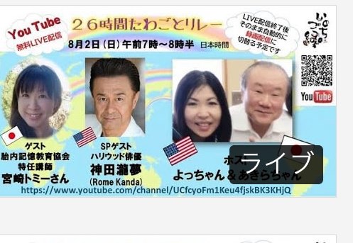 以前ゲストで出演してくださった源さん<山寺雄二さん>の発案で決まったこの度の特別企画 『26時間たわごとリレー』では、よっちゃん&あきらちゃんだけでなく、地球に広がる二人の素敵な仲間たちでホストを回して、地球を”愛と感謝と笑顔”でつなげいきます💖