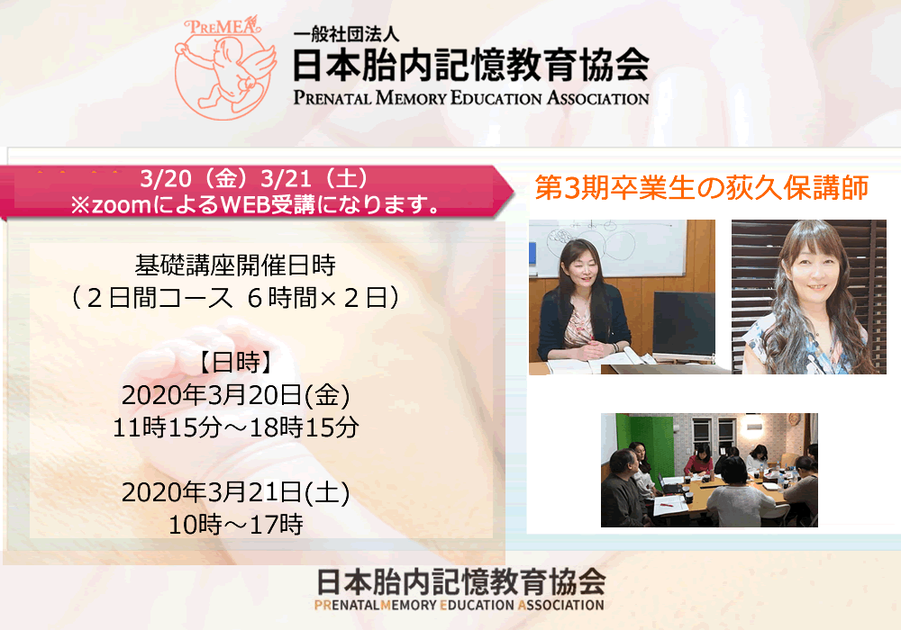 胎内記憶教育協会基礎講座開催のお知らせ【東京】※zoomによるWEB受講になります