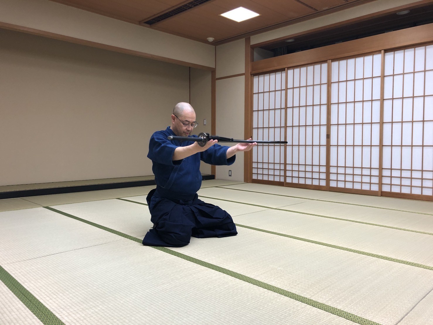 武士の礼儀作法を木刀や模造刀を使って学びます。